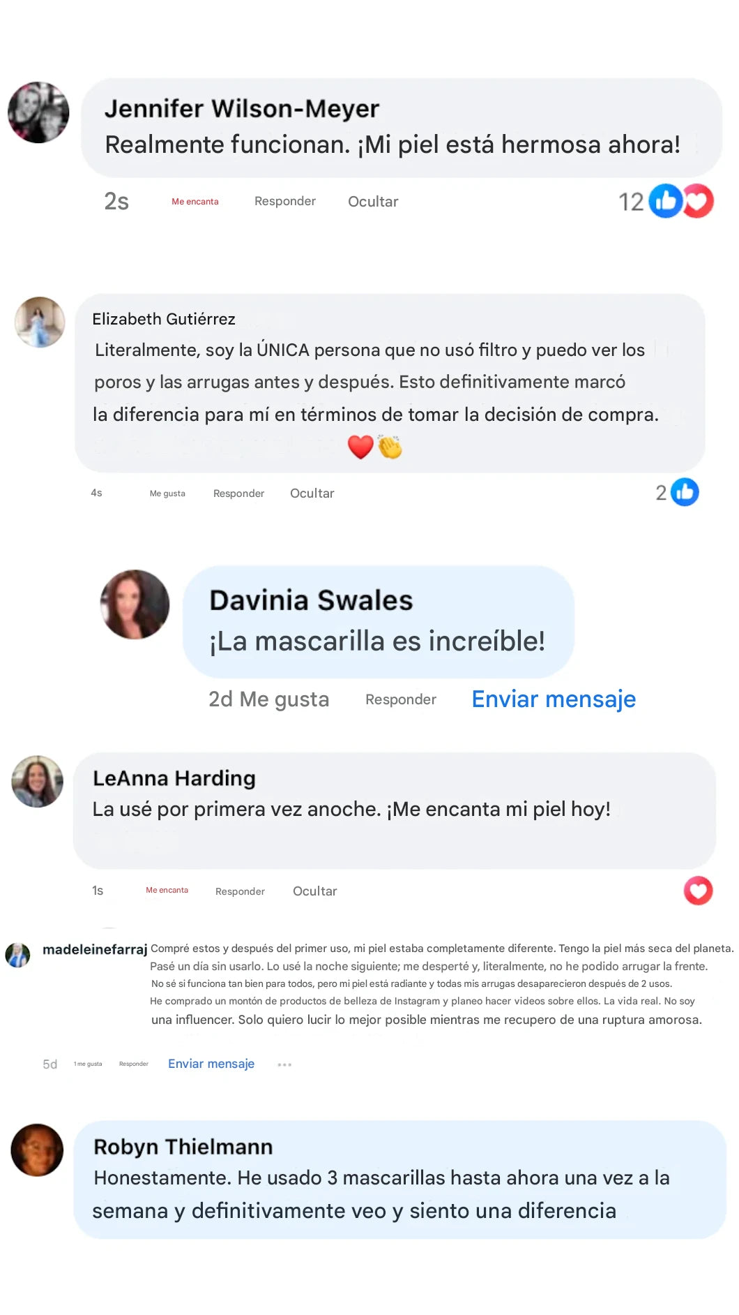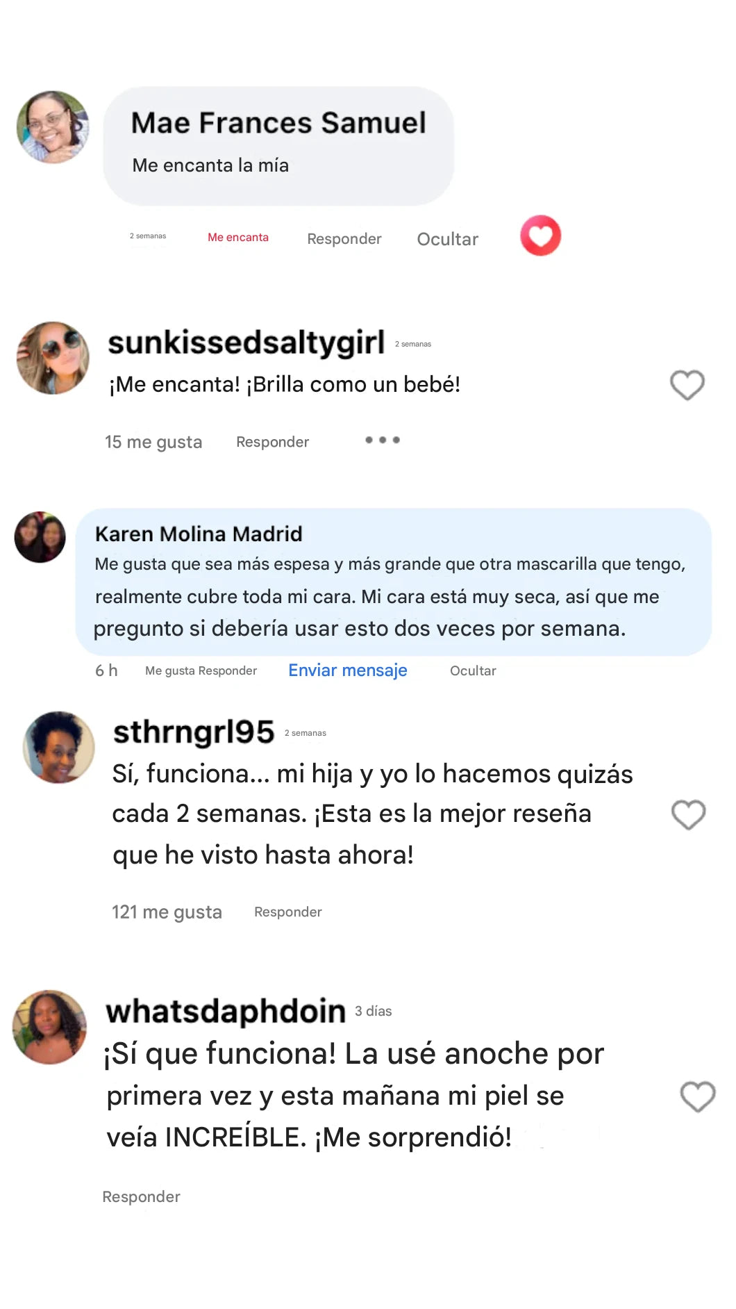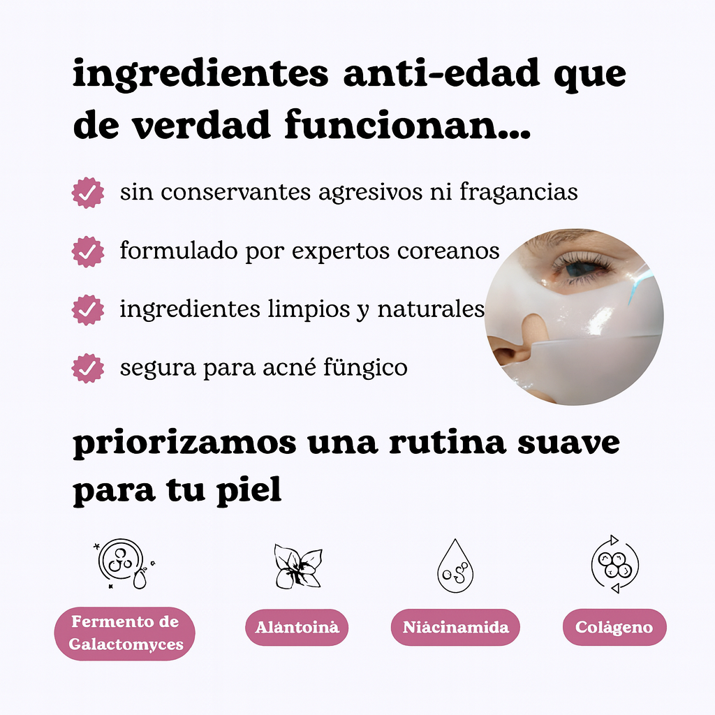 La mayoría de los usuarios notan una diferencia visible en 2 horas: textura más suave, brillo radiante y una sensación más firme. Una mascarilla = hasta 7 días de confianza para una piel de cristal.